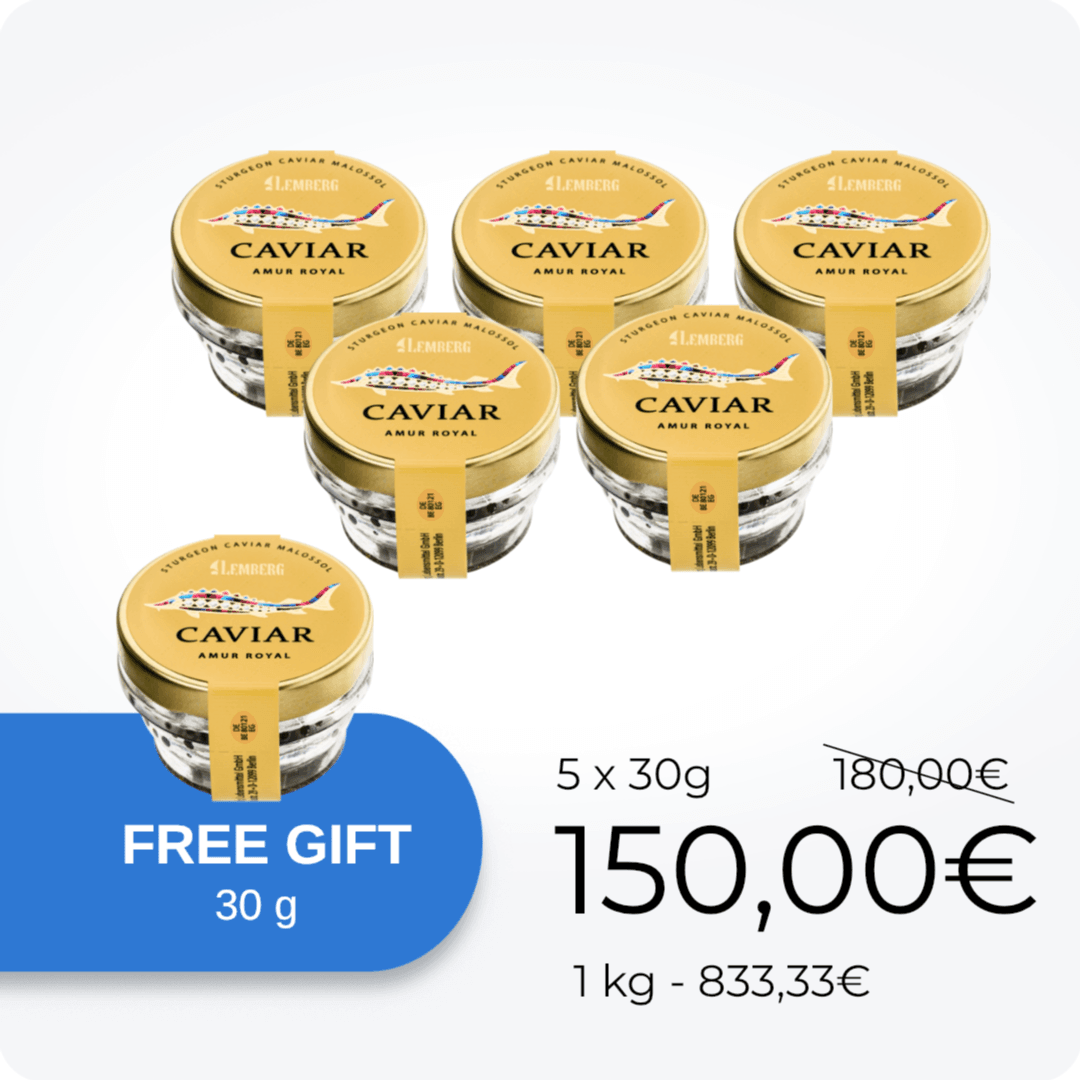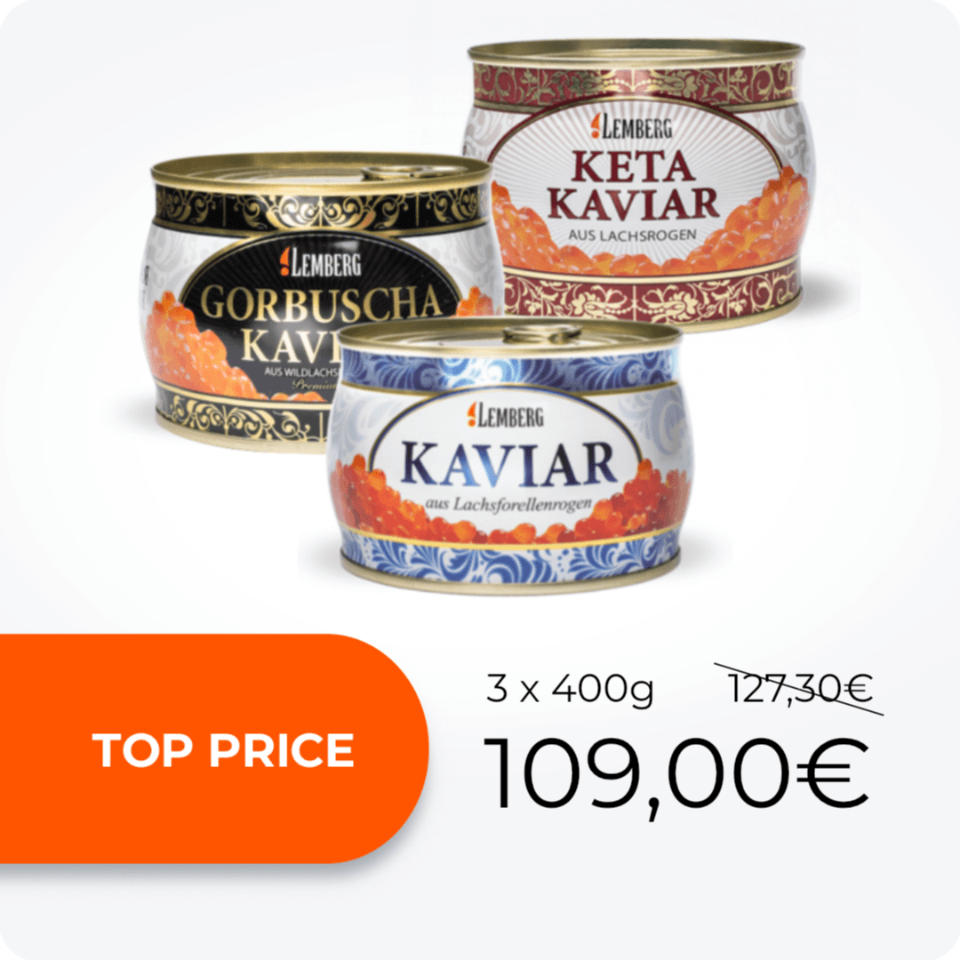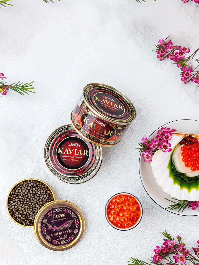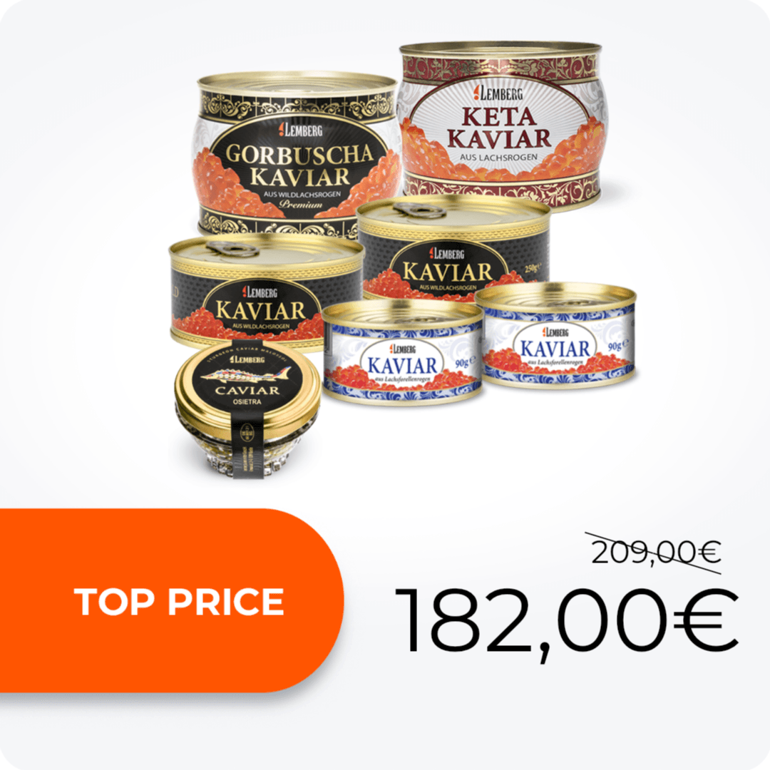Lemberg propose une large sélection d’authentique caviar d'esturgeon. Le caviar Beluga, le plus célèbre au monde, reste très prisé. Les gourmets apprécient son goût délicat de noisette et ses gros grains.