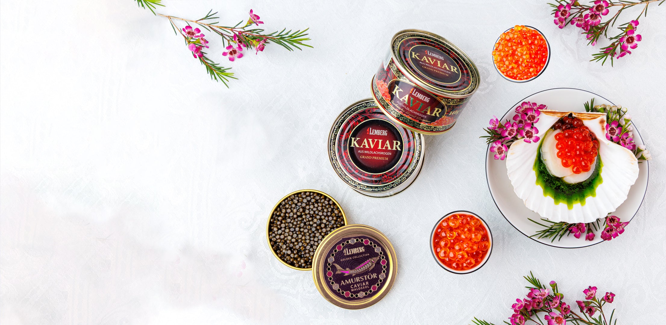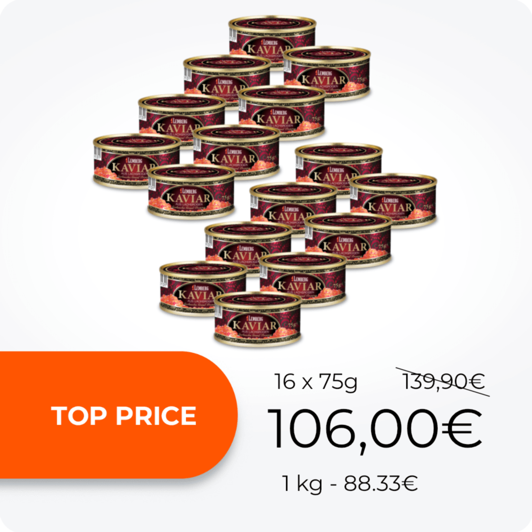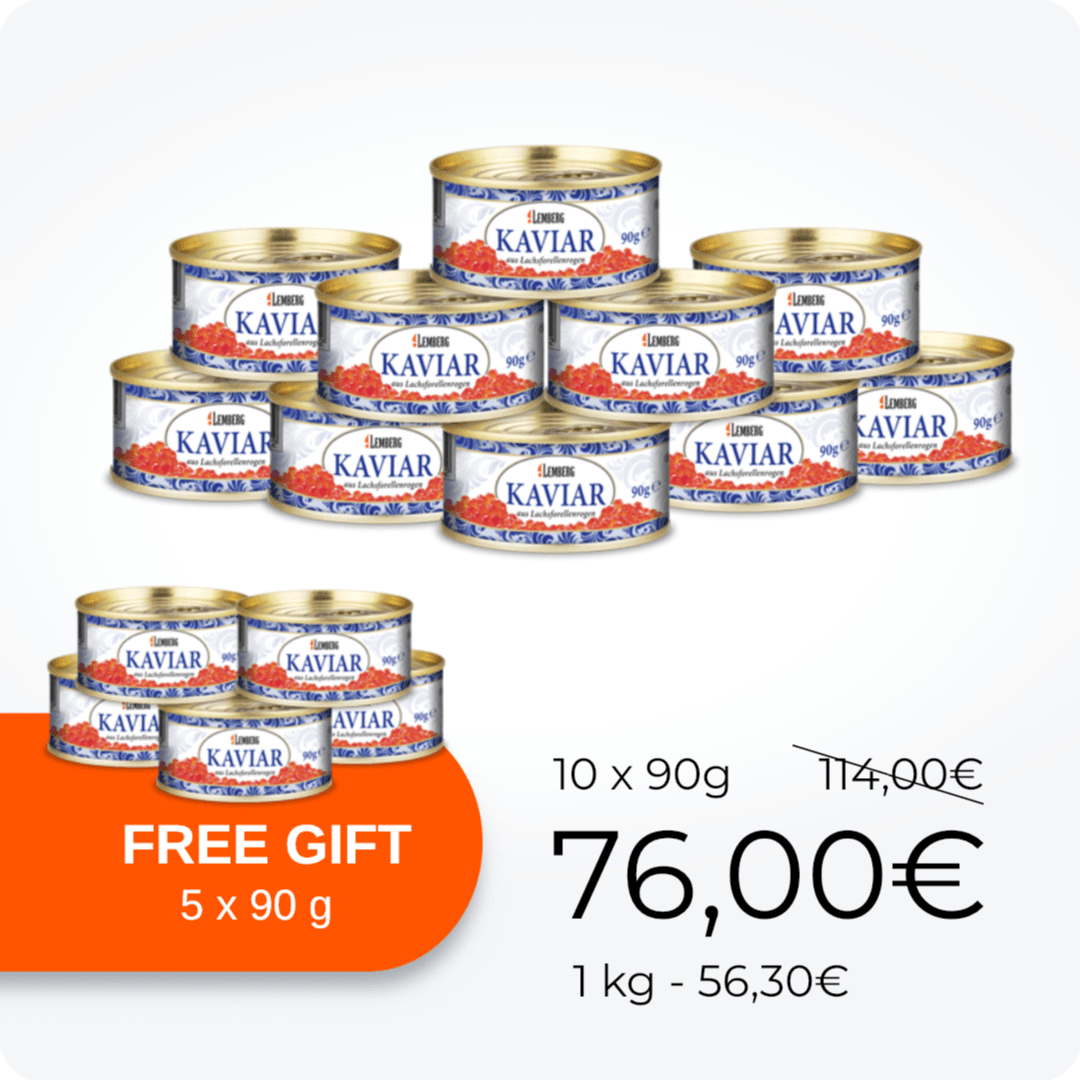 Lemberg propose une large sélection d’authentique caviar d'esturgeon. Le caviar Beluga, le plus célèbre au monde, reste très prisé. Les gourmets apprécient son goût délicat de noisette et ses gros grains.
