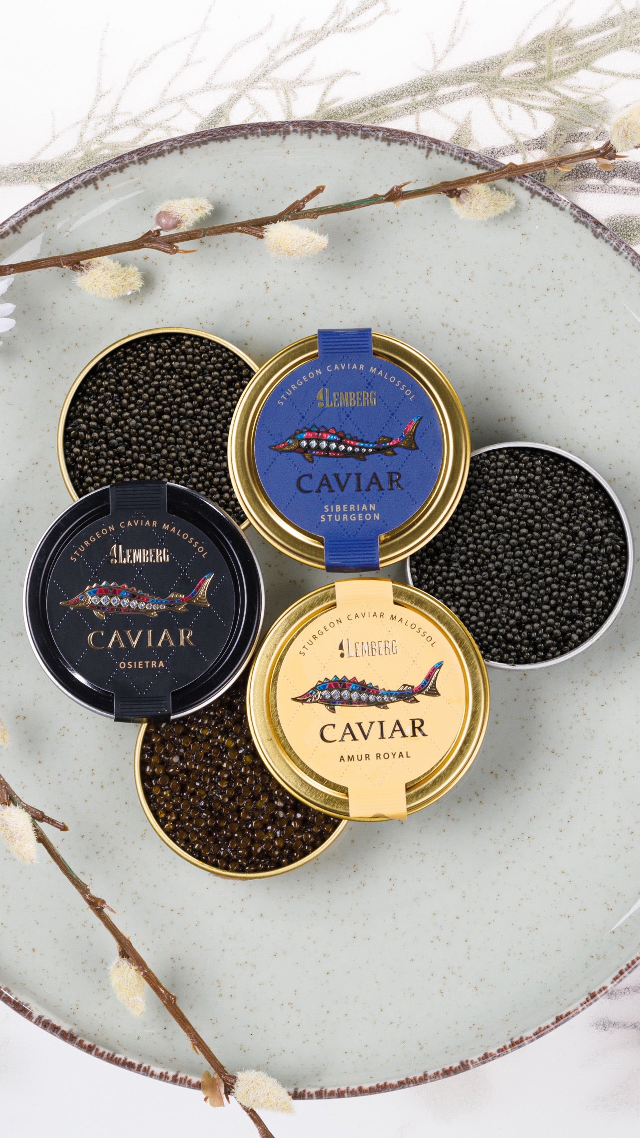 Le caviar Amur Royal est le résultat du croisement de Kaluga (lat. Huso dauricus ) avec l'esturgeon de l'Amour (lat. Acipenser schrenckii ). Il s'agit d'un produit unique qui offre une alternative à un prix attractif aux stocks limités de Beluga.